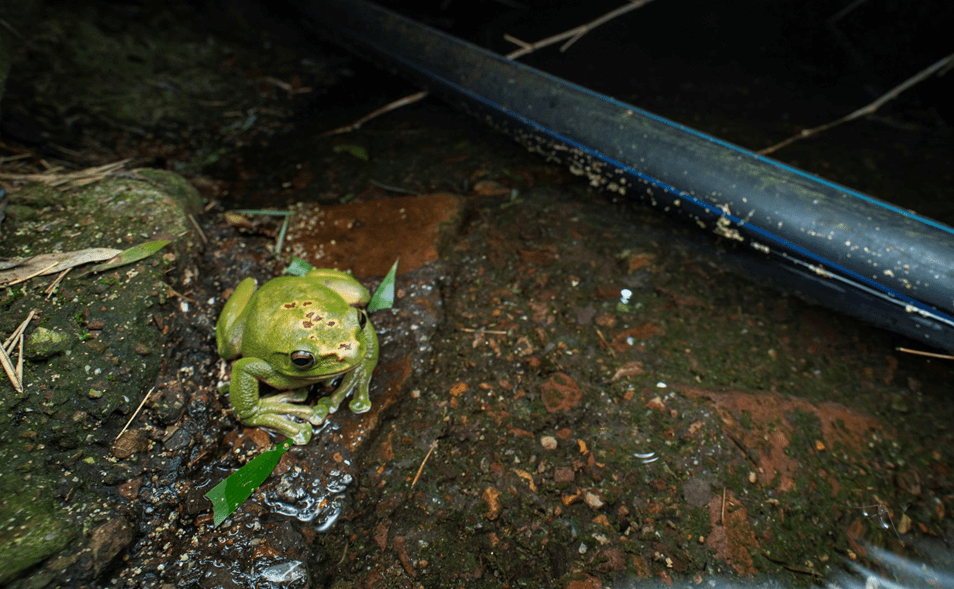 The lab’s latest publication started with a big green blob sitting next to a stream. The oversized leaf-colored lump was a Dennys’ large treefrog (Zhangixalus dennysi), a species of frog that was a real surprise for all of us there that night. The Chinese name for this species is 大树蛙, which translates literally to “big tree frog,” and these frogs certainly live up to the name, with the largest individuals exceeding ten centimeters in length. Their oversized feet and large toe pads are perfectly suited for a life in the trees, though the first one we encountered that night was hanging out next to the streambed. Their fingers and toes are even webbed to help them glide between branches.