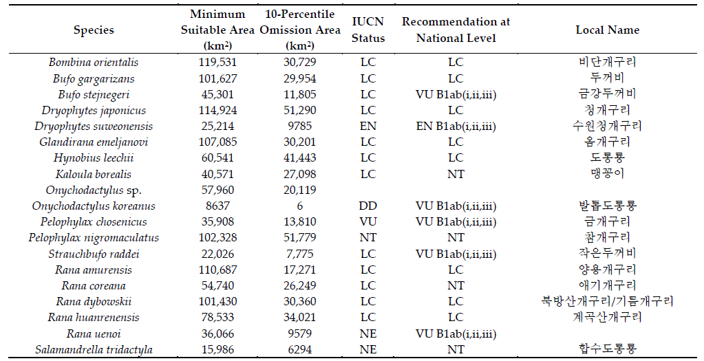 MaxEnt models for all amphibian species recorded in DPR Korea. See full text for details.