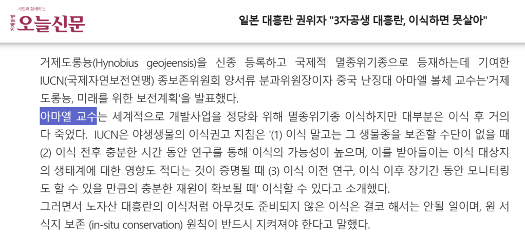 May 2022. The work on the conservation of salamanders in Yangsan, Korea, and a small symposium on the subject was covered by OhMyNews!