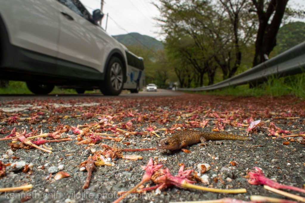 대부분의 Hynobius속의 도롱뇽들과 마찬가지로 서식지 파괴로 인하 위협에 직면해